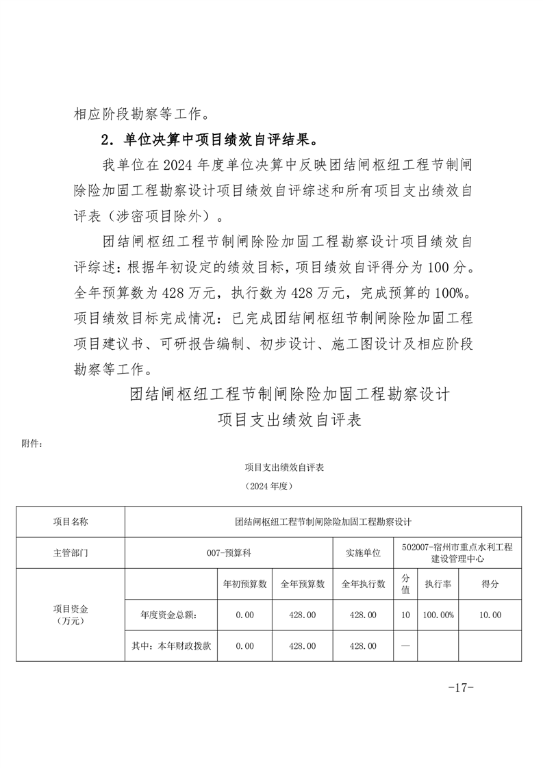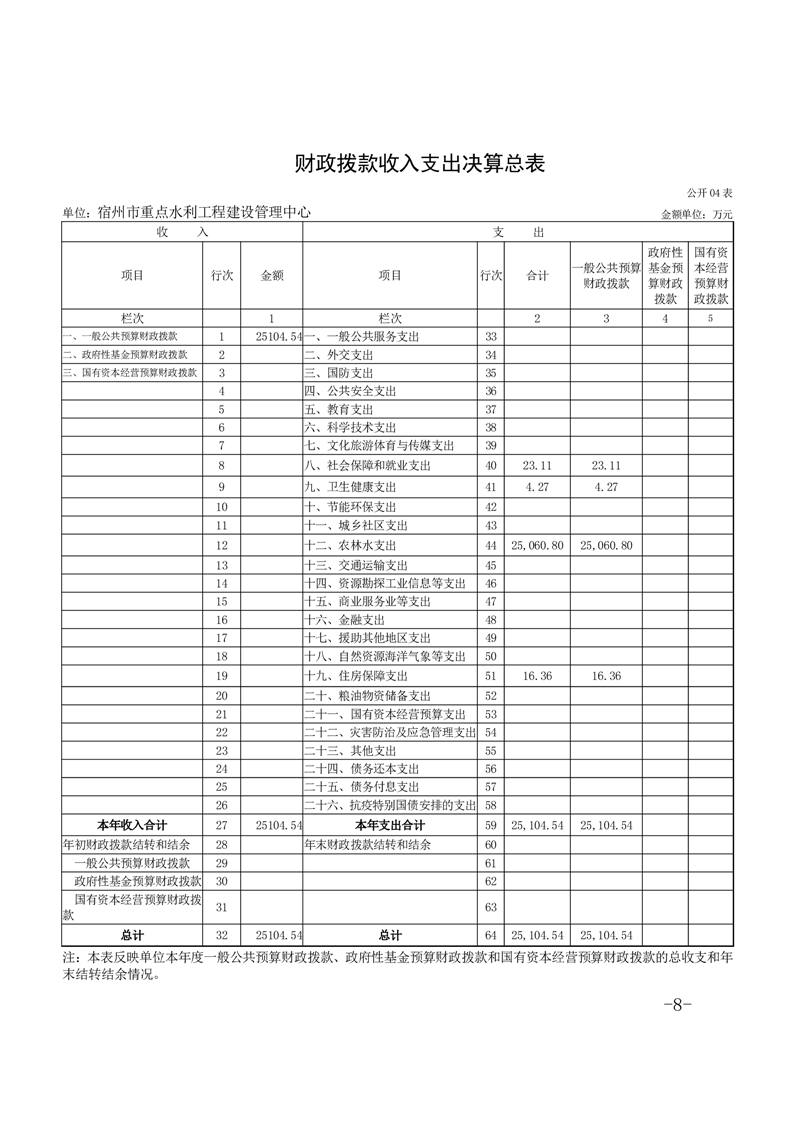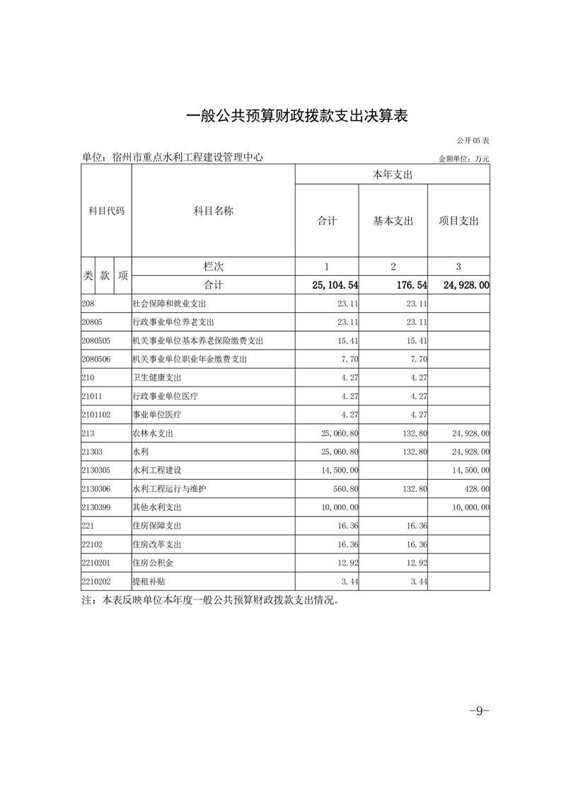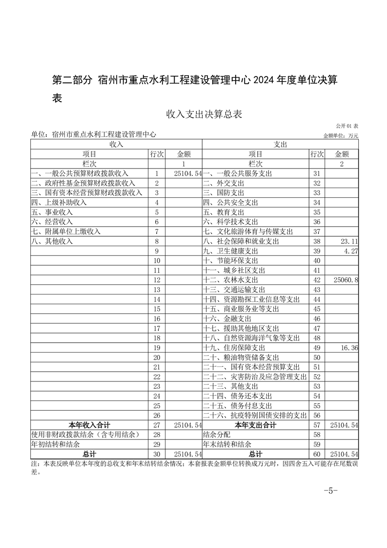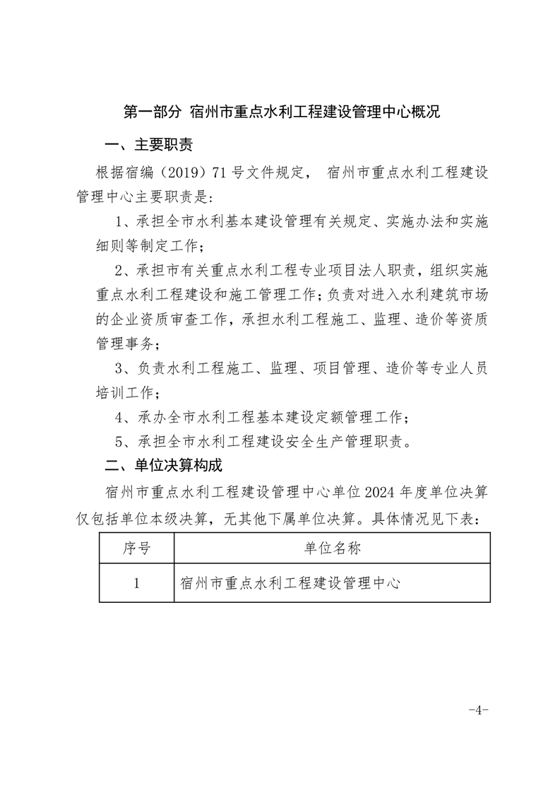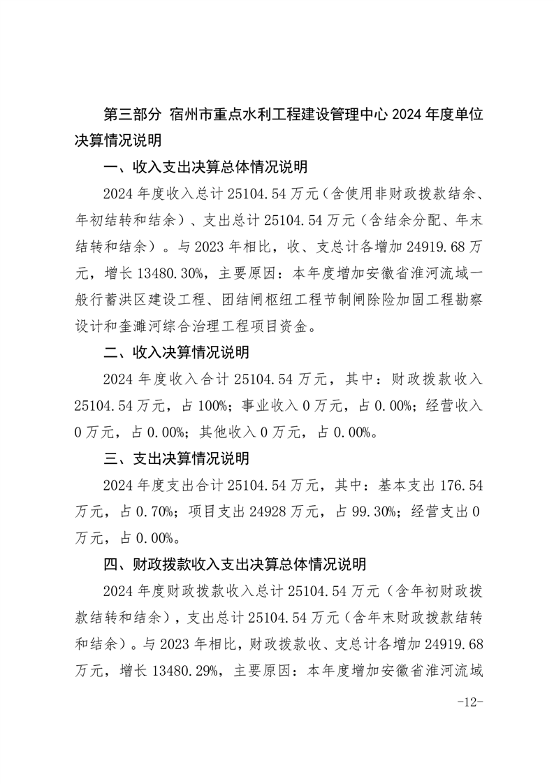 宿州市重点水利工程建设管理中心2024年度单位决算 |