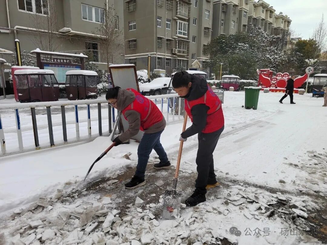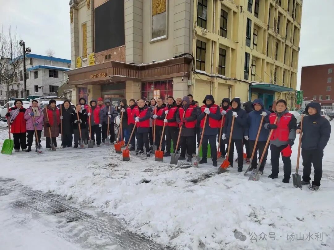 连日来,砀山县遭遇持续低温雨雪天气,漫天飞雪为“中国梨乡”披上银装的同时,也导致城区道路、小区庭院积雪结冰,给群众出行安全带来严重隐患。“以雪为令、闻雪而动,随下随清、雪停路畅!”按照县委主要负责同志部署要求,砀山县水利局迅速响应,局党组书记、局长李春杰第一时间调度部署,组织全体党员干部职工、志愿者奔赴包保路段及包保小区,以“水利铁军”的硬核担当开展铲冰除雪行动,用实干为群众打通“安全出行路”。