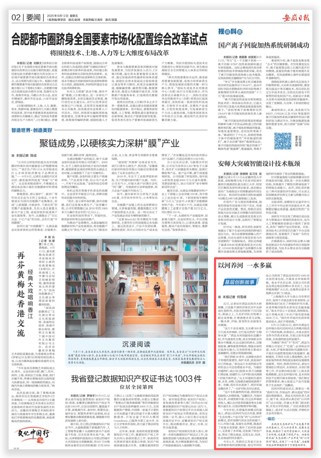编者按:碧波荡漾、浮球闪烁,民利河上300万只珍珠蚌正悄然“打工”,化身“生物净水器”,吐出清流、固碳净水,更带动就业、激活产业——这是正在泗县生动实践的“一水多赢”生态治理新画卷!今天,《安徽日报》二版聚焦泗县创新推出“生态治理+产业开发”模式,实现“以河养河。下面跟随小编一起看看泗县如何走出一条“政府引导、市场运作、群众受益”的河道治理新路!