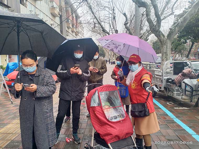 3月17日,我局组织党员志愿者20余人次,冒着小雨,与街道干部、社区工作人员、基层卫生服务人员以及居民志愿者一道,共同全力以赴做好区域核酸检测,确保了核酸检测工作有序进行,用实际行动展示了党员先锋模范作用,让党旗在疫情防控一线高高飘扬。(赵宇驰)
